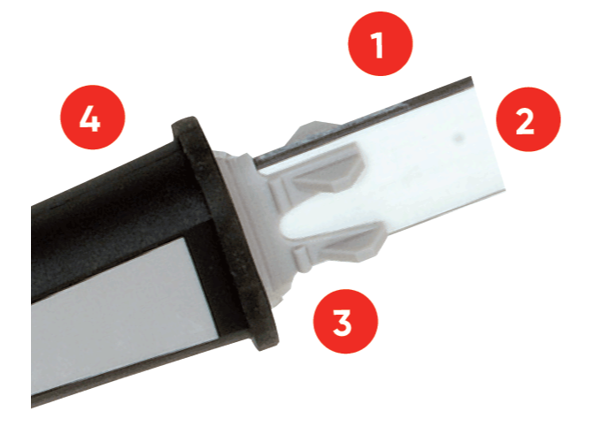 - Soft elastomer for a non-slip, blister-free grip.