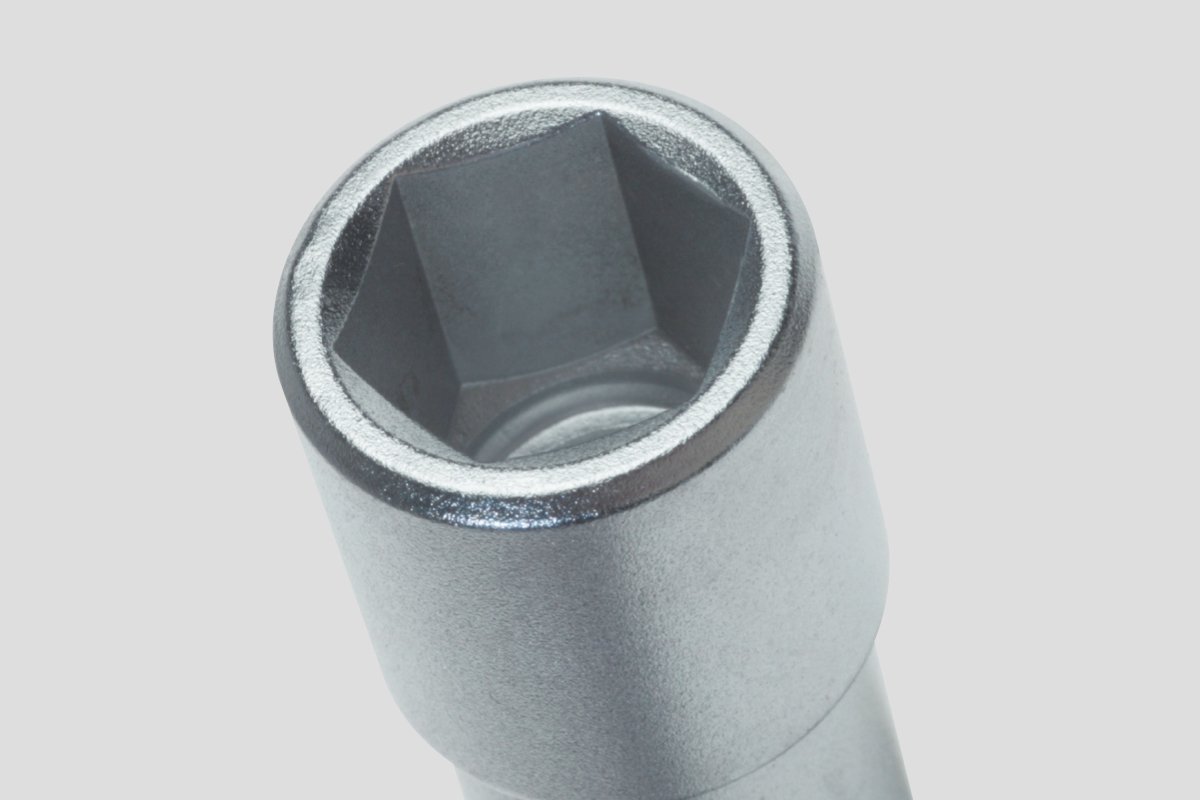 A hexagonal socket or punching molds to the hexagon of the nut and thus allows a very strong grip and good transmission of the tightening torque.
