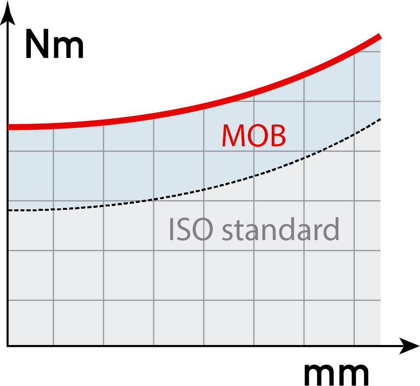 The resistance of MOB wrenches is far superior to the specifications of ISO standards.