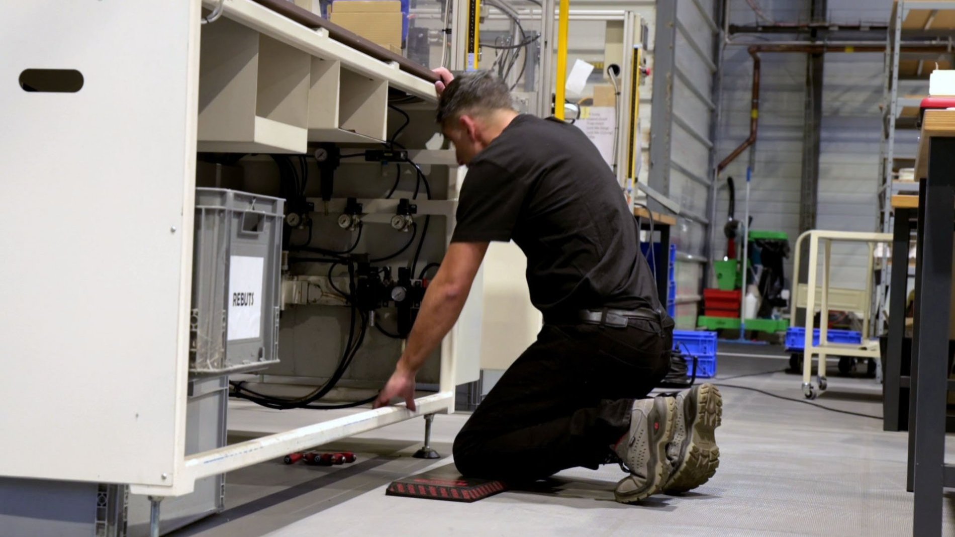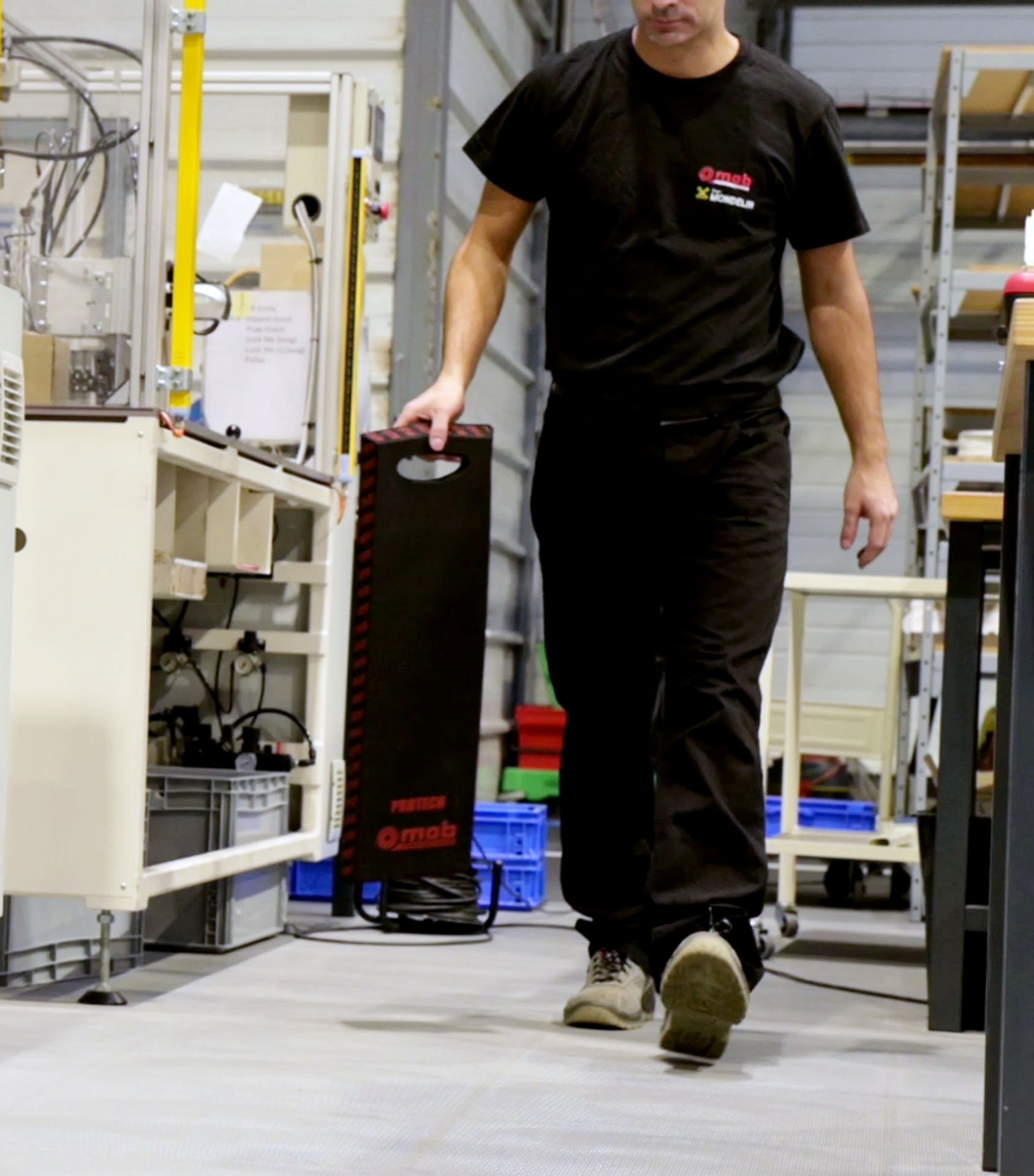 Measuring 675 x 215 x 25 mm, the PROTECH mat allows you to put your knees side by side, slightly apart and to make small movements in the length.“It has nothing to do with a knee brace that you have to lift. With the PROTECH mat, I move more naturally, I vary my movements without difficulty. It's much less tiring. Its compact size is ideal for mobile maintenance. I place it on my tool box and when I'm done I carry it by the handle. It's perfect !"